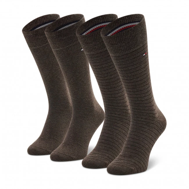 Lot de 2 paires de chaussettes hautes homme TOMMY HILFIGER – 100001496 Oak 778 ☝ Chaussettes hautes homme Tommy Hilfiger à prix avantageux