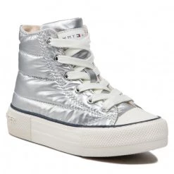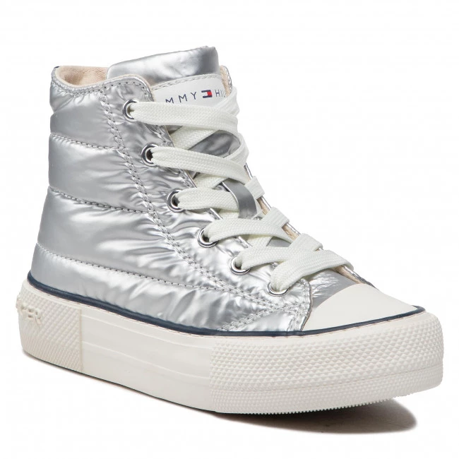 Baskets TOMMY HILFIGER – High Top Lace-Up Sneaker T3A9-32290-1437 M Silver 904 ☝ Boots fille Tommy Hilfiger à prix avantageux