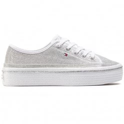 Baskets TOMMY HILFIGER – Low Cut Lace-Up Sneaker T3A4-32118-0890 S White 100 ☝ Chaussures à lacets fille Tommy Hilfiger à prix avantageux