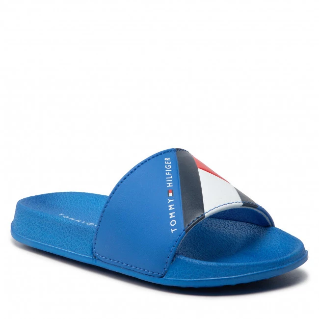 Mules / sandales de bain TOMMY HILFIGER – Flag Print Pool Slide T3B0-32273-1172 M Royal 801 ☝ Mules garçon Tommy Hilfiger à prix avantageux