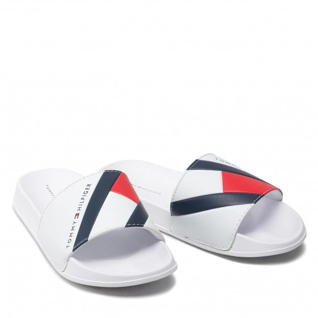 Mules / sandales de bain Tommy Hilfiger – Flag Print Pool Slide T3B0-32273-1172100 S White 100 ☝ Mules garçon Tommy Hilfiger à prix avantageux