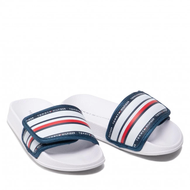 Mules / sandales de bain TOMMY HILFIGER – Maxi Velcro Pool Slide T3B0-32272-1172 M White 100 ☝ Mules garçon Tommy Hilfiger à prix avantageux