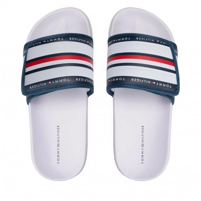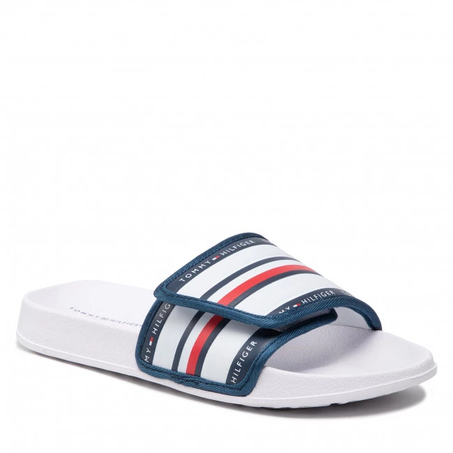 Mules / sandales de bain Tommy Hilfiger – Maxi Velcro Pool Slide T3B0-32272-1172 S White 100 ☝ Mules garçon Tommy Hilfiger à prix avantageux