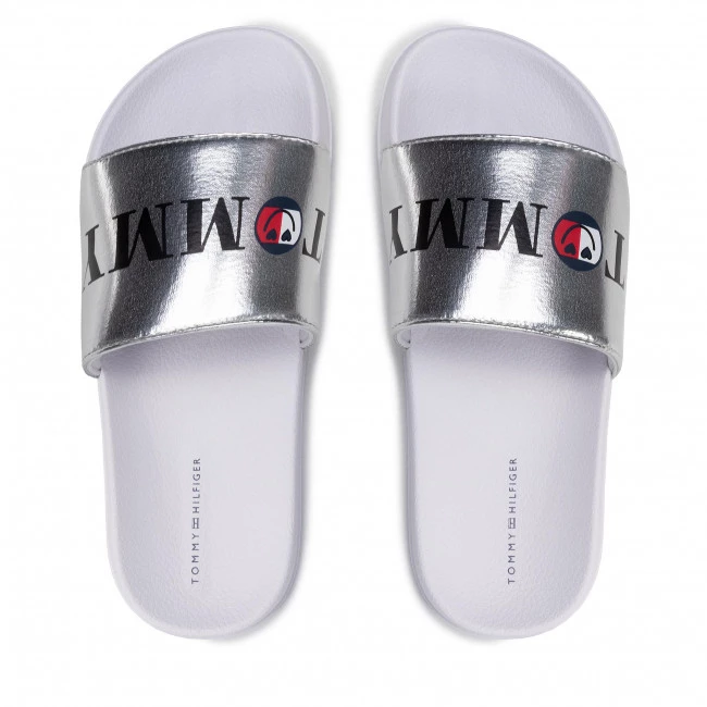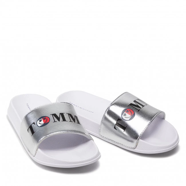 Mules / sandales de bain TOMMY HILFIGER – Smile Print Pool Slide T3A0-32194-1367 S Silver 904 ☝ Mules fille Tommy Hilfiger à prix avantageux