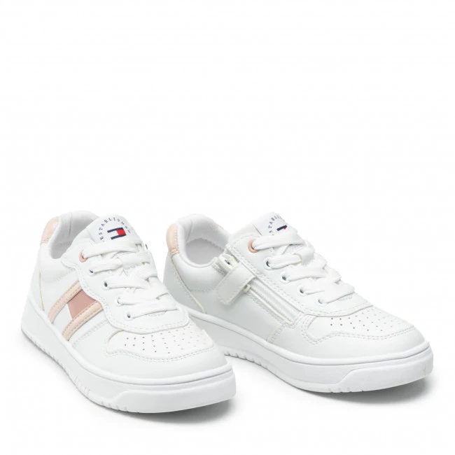Sneakers TOMMY HILFIGER – Lo Cut Lace-Up T3A4-32143-1351 White/Pink X134 ☝ Chaussures à lacets fille Tommy Hilfiger à prix avantageux