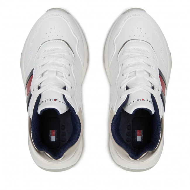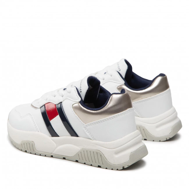 Sneakers TOMMY HILFIGER – Low Cut Lace-Up Sneaker T3A9-32355-1438 M White/Silver ☝ Chaussures à lacets fille Tommy Hilfiger à prix avantageux