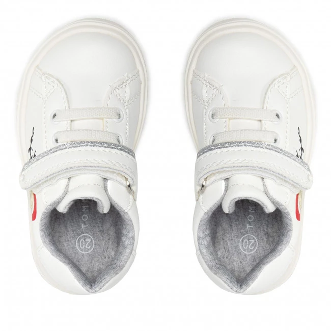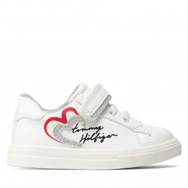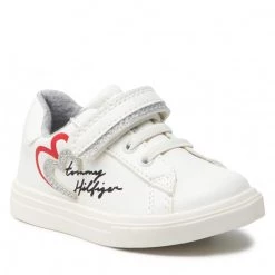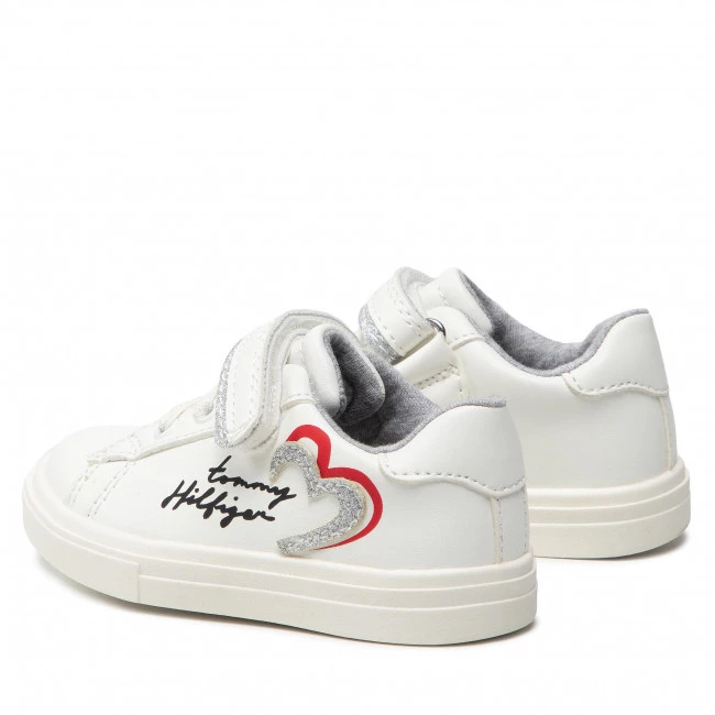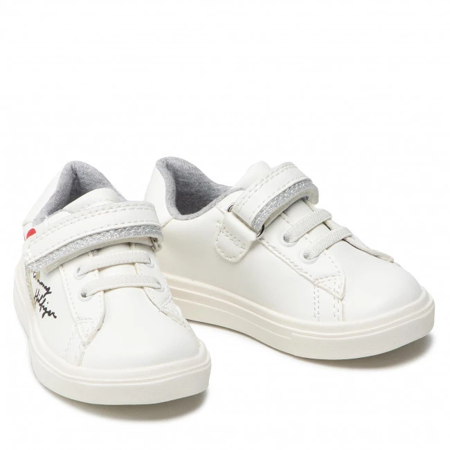 Sneakers TOMMY HILFIGER – Low Cut Lace-Up/Velcro Sneaker T1A4-32132-1374 M White/Silver X025 ☝ Chaussures à velcro fille Tommy Hilfiger à prix avantageux