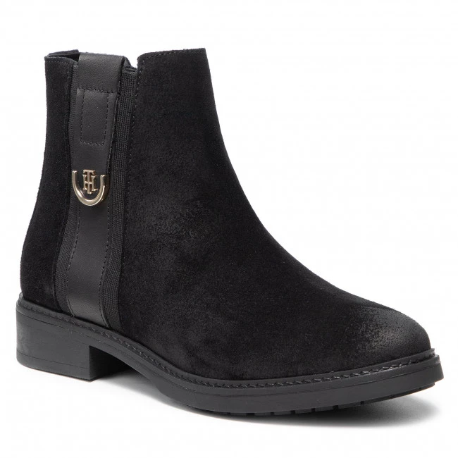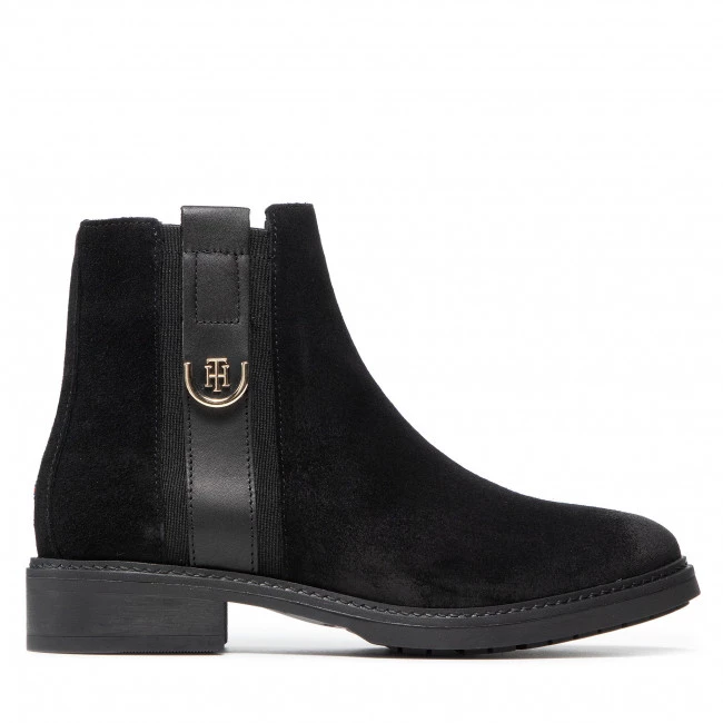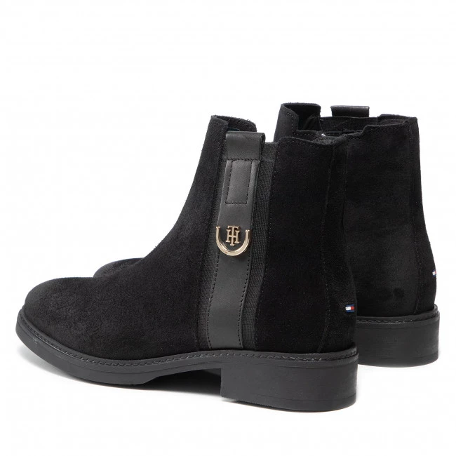 Bottines TOMMY HILFIGER – Th Hardware Suede Flat Boot FW0FW05974 Black BDS ☝ Bottines femme Tommy Hilfiger à prix avantageux