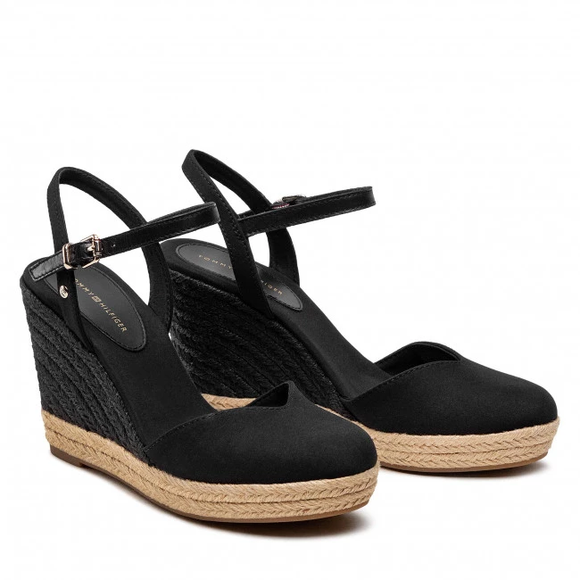 Espadrilles TOMMY HILFIGER – Basic Closed Toe High Wedge FW0FW04786 Black BDS ☝ Mules espadrilles femme Tommy Hilfiger à prix avantageux