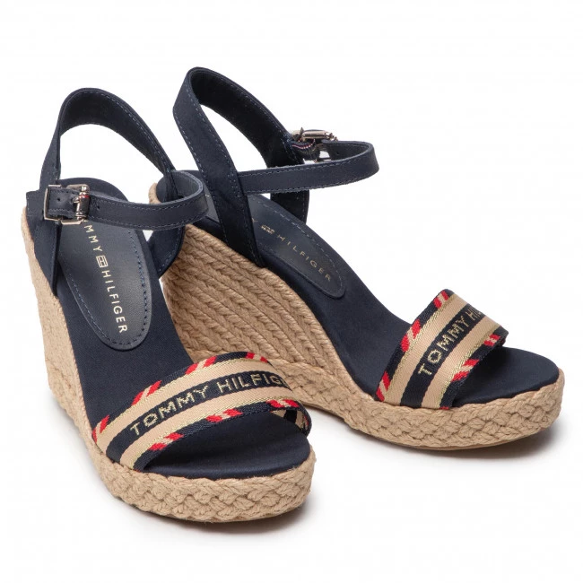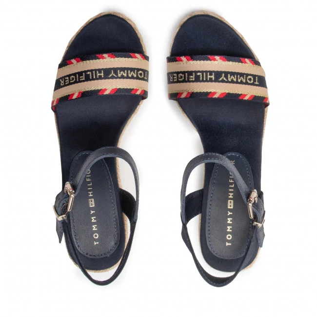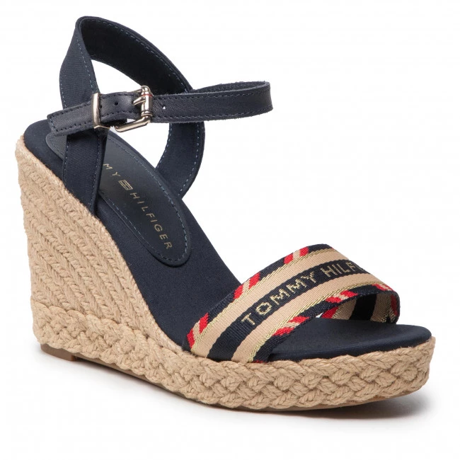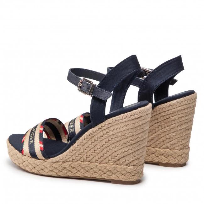 Espadrilles TOMMY HILFIGER – Corporate Webbing High Wedge FW0FW06295 Desert Sky DW5 ☝ Mules espadrilles femme Tommy Hilfiger à prix avantageux