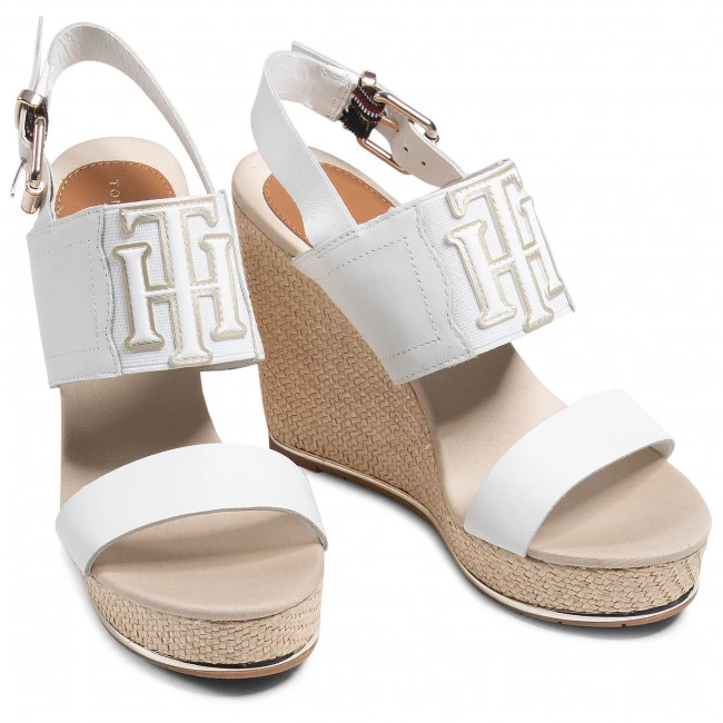 Espadrilles TOMMY HILFIGER – Th Elastic High Wedge Sandal FW0FW05599 Ecru YBL ☝ Mules espadrilles femme Tommy Hilfiger à prix avantageux