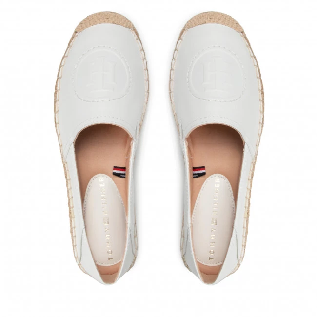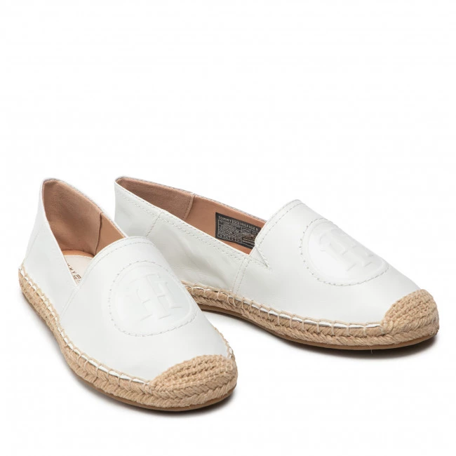Espadrilles TOMMY HILFIGER – Th Logo Leather Espadrille FW0FW06168 Ecru YBL ☝ Espadrilles femme Tommy Hilfiger à prix avantageux