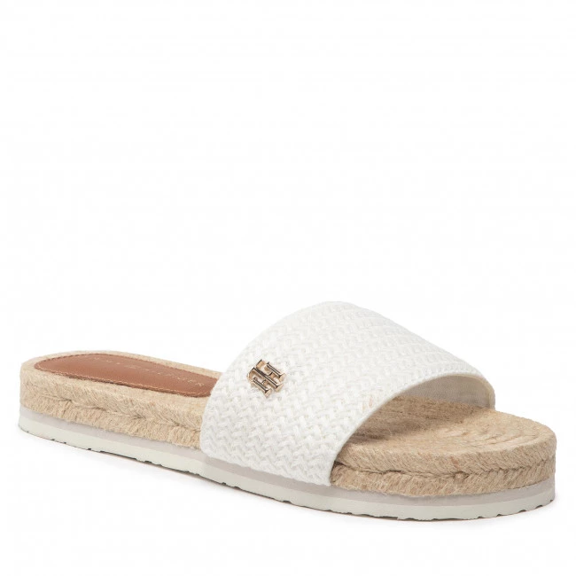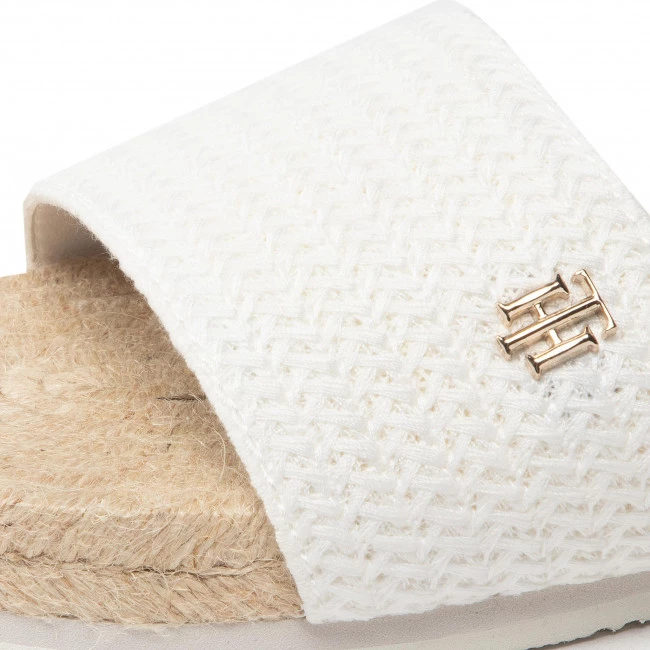 Espadrilles TOMMY HILFIGER – Th Textured Flat Sandal FW0FW06438 Ecru YBL ☝ Mules espadrilles femme Tommy Hilfiger à prix avantageux
