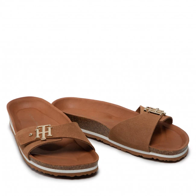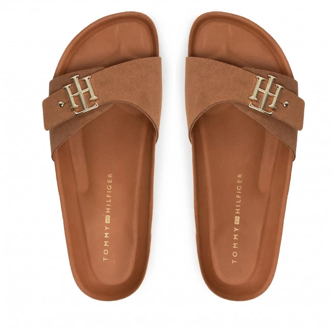 Mules / sandales de bain TOMMY HILFIGER – Th Molded Footbed Flat Sandal FW0FW06244 Summer Cognac ☝ Mules casual femme Tommy Hilfiger à prix avantageux