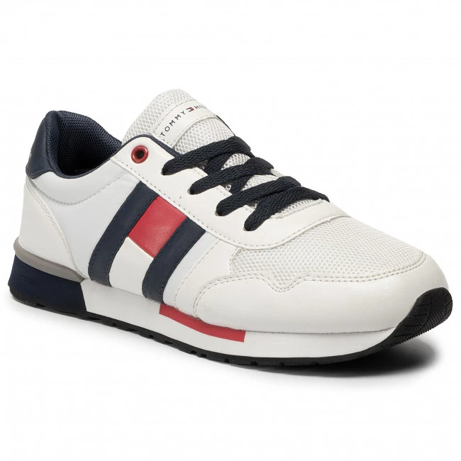 Sneakers TOMMY HILFIGER – Low Cut Lace-Up Sneaker T3B4-30483-0733 White/Blue X336 ☝ Sneakers femme Tommy Hilfiger à prix avantageux