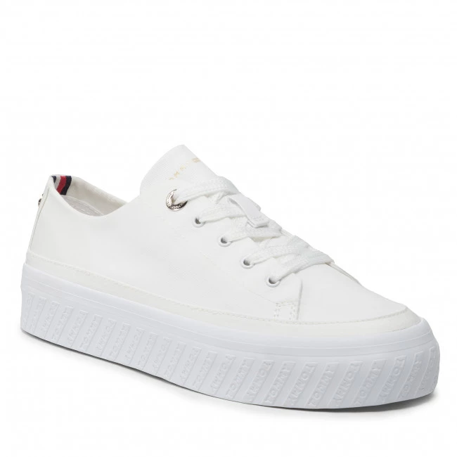 Sneakers TOMMY HILFIGER – Monochromatic Vulc Sneaker FW0FW06460 White YBR ☝ Sneakers femme Tommy Hilfiger à prix avantageux