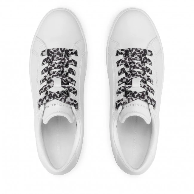 Sneakers TOMMY HILFIGER – Th Animal Printed Laces Sneaker FW0FW06069 White YBR ☝ Sneakers femme Tommy Hilfiger à prix avantageux