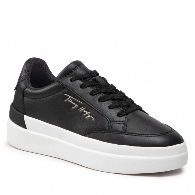Sneakers Tommy Hilfiger – Th Signature Leather Sneaker FW0FW06665 Black BDS ☝ Sneakers femme Tommy Hilfiger à prix avantageux