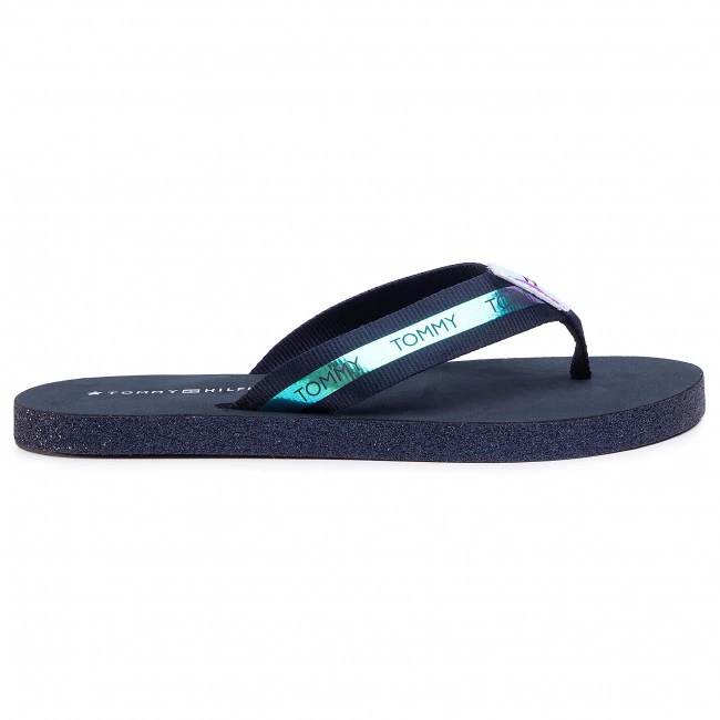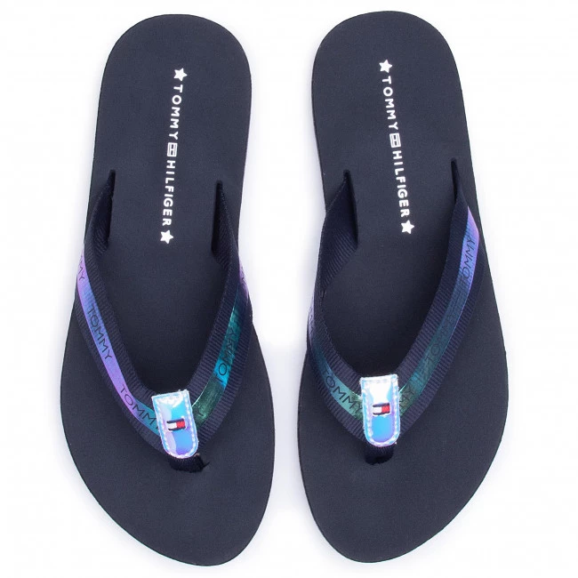 Tongs TOMMY HILFIGER – Flat Beach Sandal Iridescent FW0FW05125 Desert Sky DW5 ☝ Tongs femme Tommy Hilfiger à prix avantageux