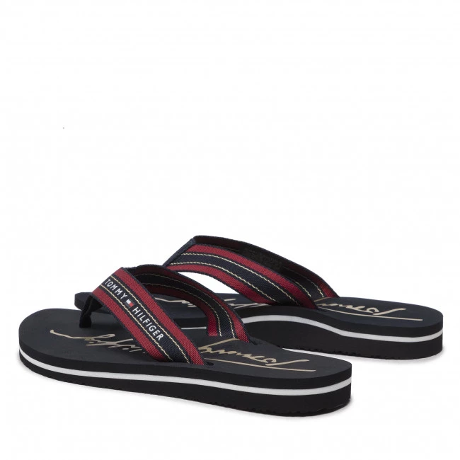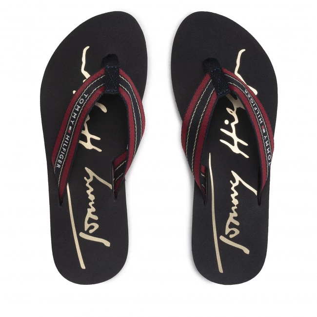 Tongs Tommy Hilfiger – Gold Signature Beach Sandal FW0FW06709 Desert Sky DW5 ☝ Tongs femme Tommy Hilfiger à prix avantageux