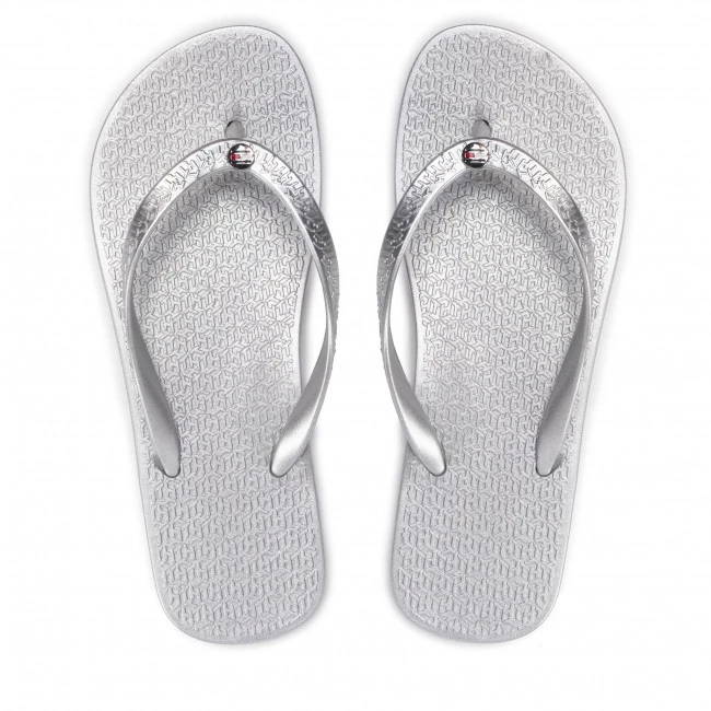 Tongs TOMMY HILFIGER – Metallic Flat Beach Sandal FW0FW06445 Silver 0IM ☝ Tongs femme Tommy Hilfiger à prix avantageux