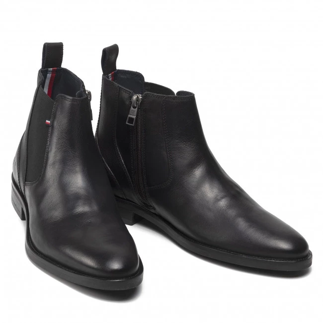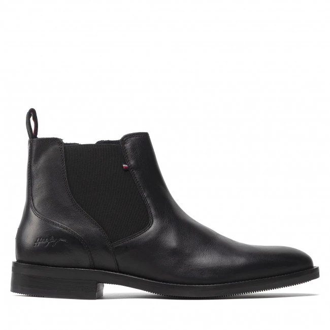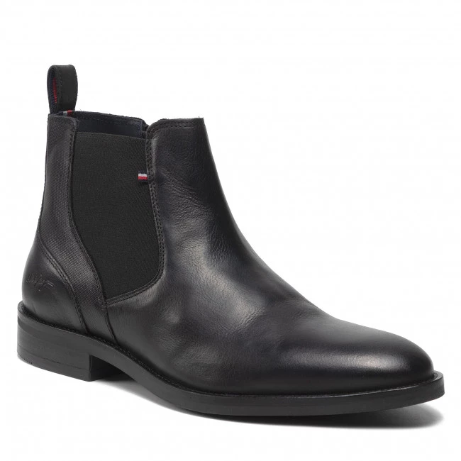 Boots TOMMY HILFIGER – Signature Hilfiger Texture Chels FM0FM03930 Black BDS ☝ Boots homme Tommy Hilfiger à prix avantageux