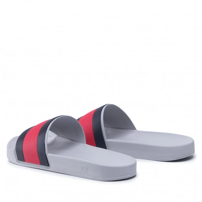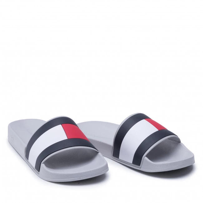 Mules / sandales de bain Tommy Hilfiger – Rubber Th Flag Pool Slide FM0FM04263 Grey Whisper PQU ☝ Mules homme Tommy Hilfiger à prix avantageux