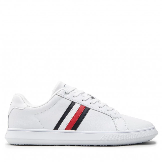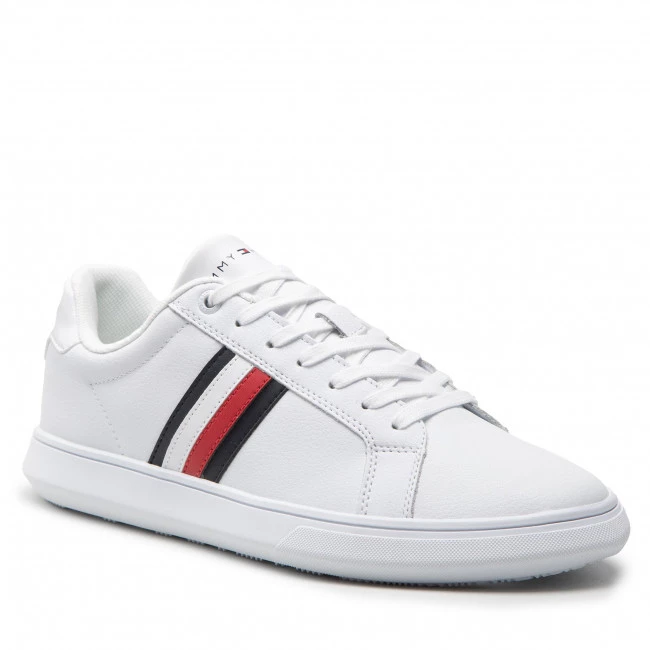 Sneakers Tommy Hilfiger – Corporate Cup Leather Stripes FM0FM04275 White YBR ☝ Chaussures sneakers homme Tommy Hilfiger à prix avantageux