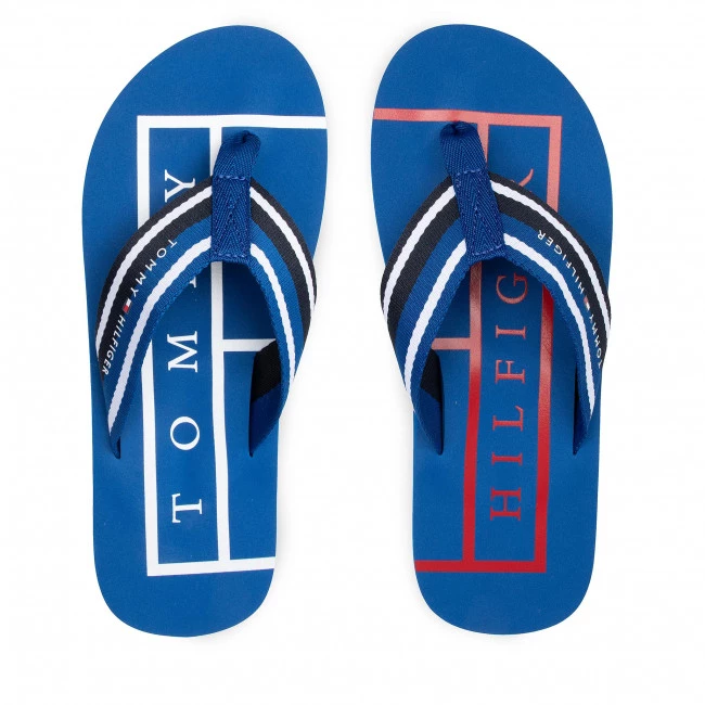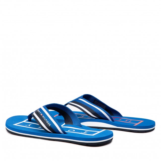 Tongs TOMMY HILFIGER – Strips Hilfiger Beach Sandal FM0FM04066 Greek Isle Blue C5K ☝ Tongs homme Tommy Hilfiger à prix avantageux