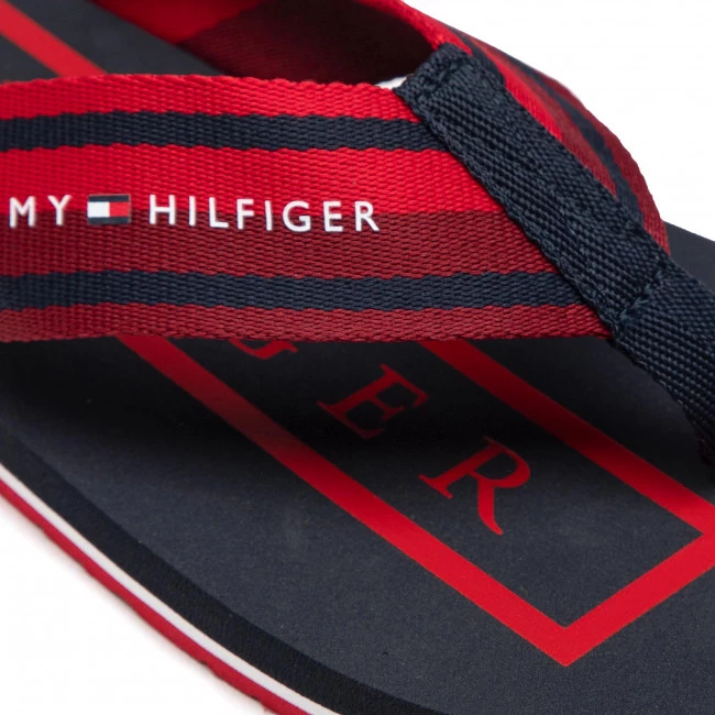 Tongs Tommy Hilfiger – Strips Hilfiger Beach Sandal FM0FM04066 Primary Red XLG ☝ Tongs homme Tommy Hilfiger à prix avantageux