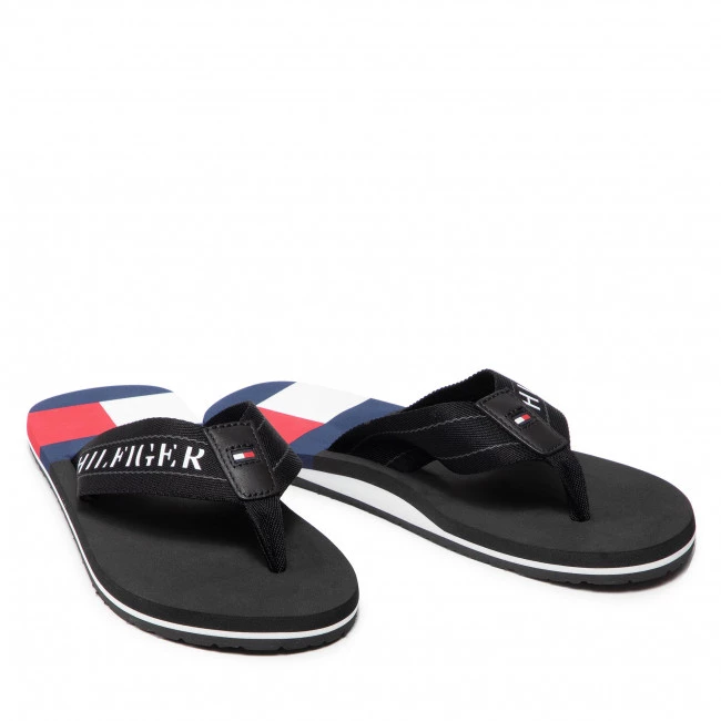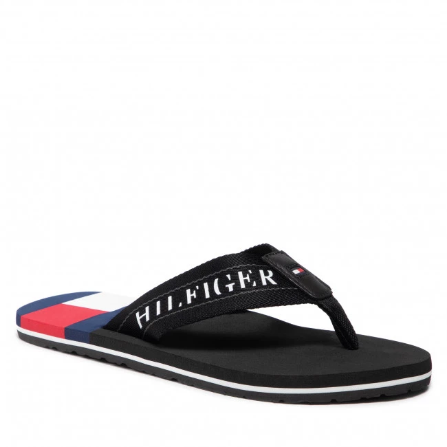 Tongs Tommy Hilfiger – Th Flag Mens Beach Sandal FM0FM03919 Black BDS ☝ Tongs homme Tommy Hilfiger à prix avantageux