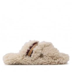 Femme Chaussons Tommy Hilfiger – Sherpa Fur Home Slippers Strap FW0FW06576 Classic Beige ACI Beige