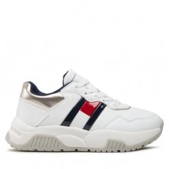 Enfant Sneakers TOMMY HILFIGER – Low Cut Lace-Up Sneaker T3A9-32355-1438 M White/Silver Blanc