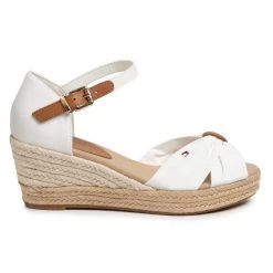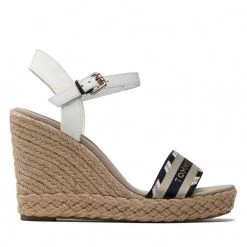 Femme Espadrilles TOMMY HILFIGER – Corporate Webbing High Wedge FW0FW06295 Ecru YBL Beige, Blanc