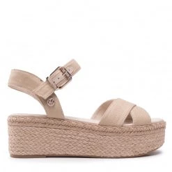 Femme Espadrilles TOMMY HILFIGER – Shiny Touches Flatform Wedge FW0FW06245 Light Gold 0LJ Beige
