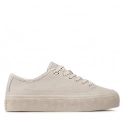 Femme Sneakers TOMMY HILFIGER – Essential Th Leather Sneaker FW0FW06556 Feather White AF4 Beige