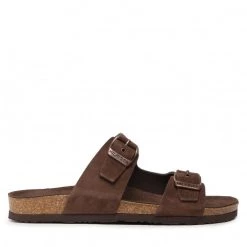 Homme Mules / Sandales De Bain TOMMY HILFIGER – Cork Suede Buckle Sandal FM0FM04367 Cocoa GT6 Marron