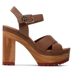 Femme Sandales TOMMY HILFIGER – Feminine High Heel Clog Sandal FW0FW06242 Summer Cognac GU9 Marron