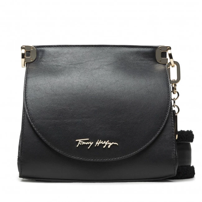 Sac à main Tommy Hilfiger – Luxe Leather Flap Crossover AW0AW10376 BDS ☝ Sacs bandoulière Tommy Hilfiger à prix avantageux